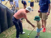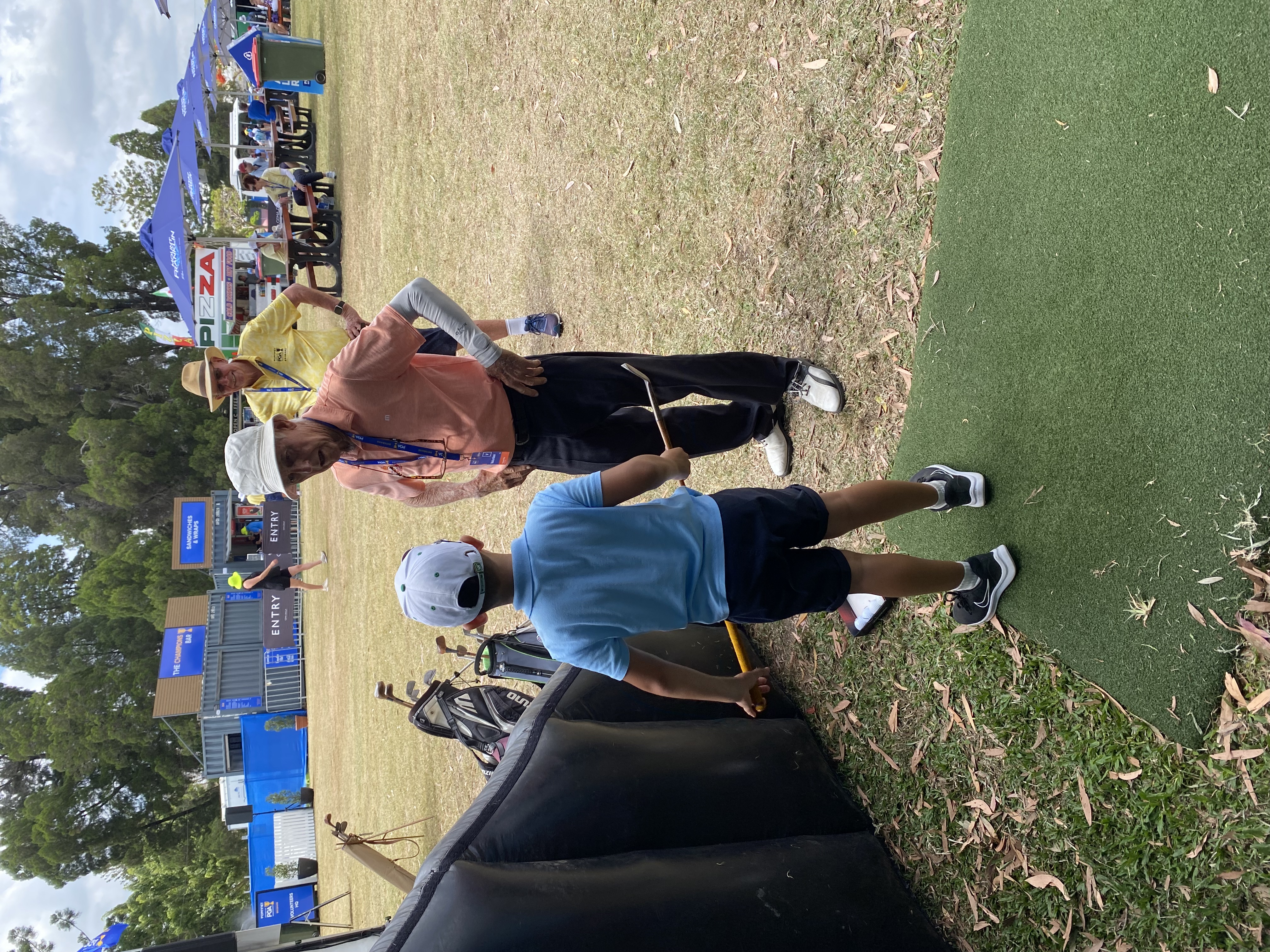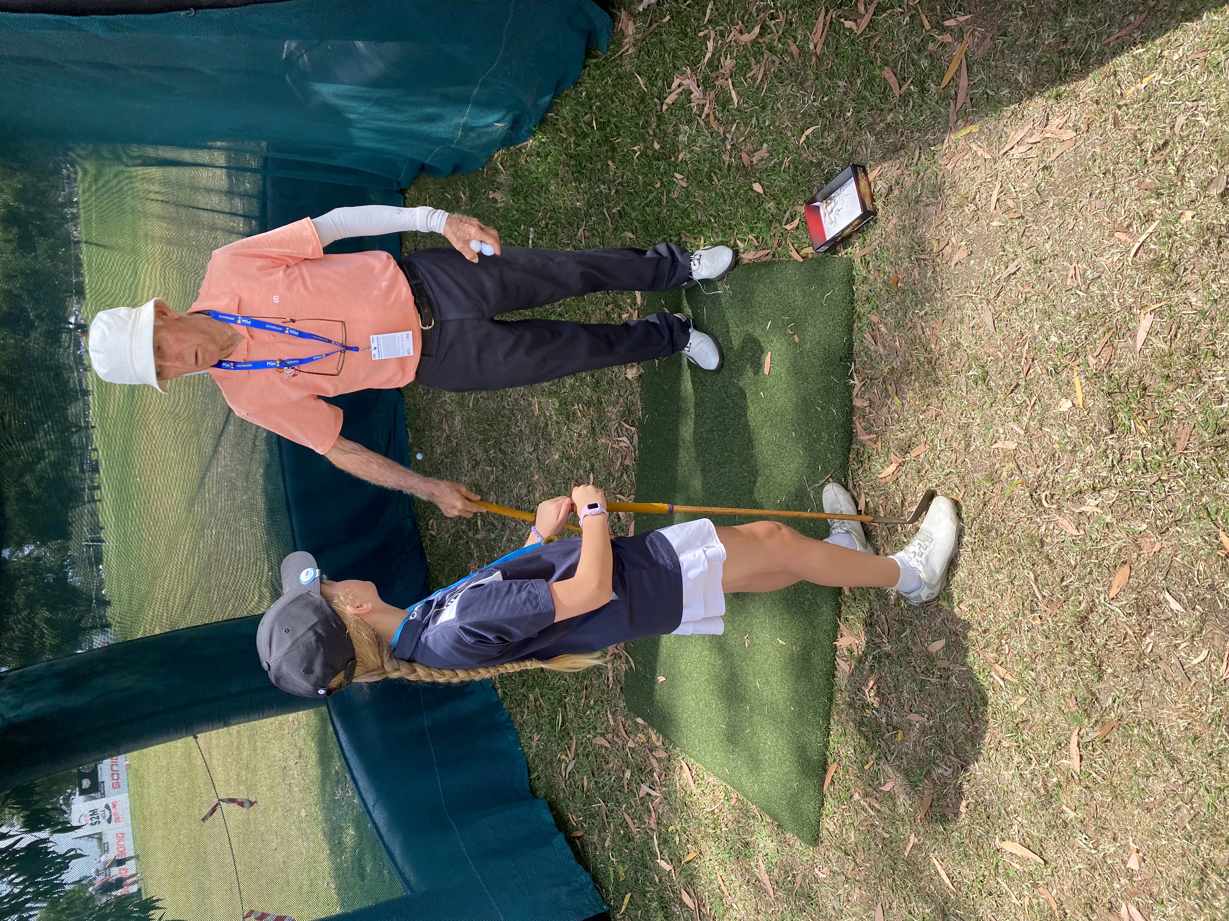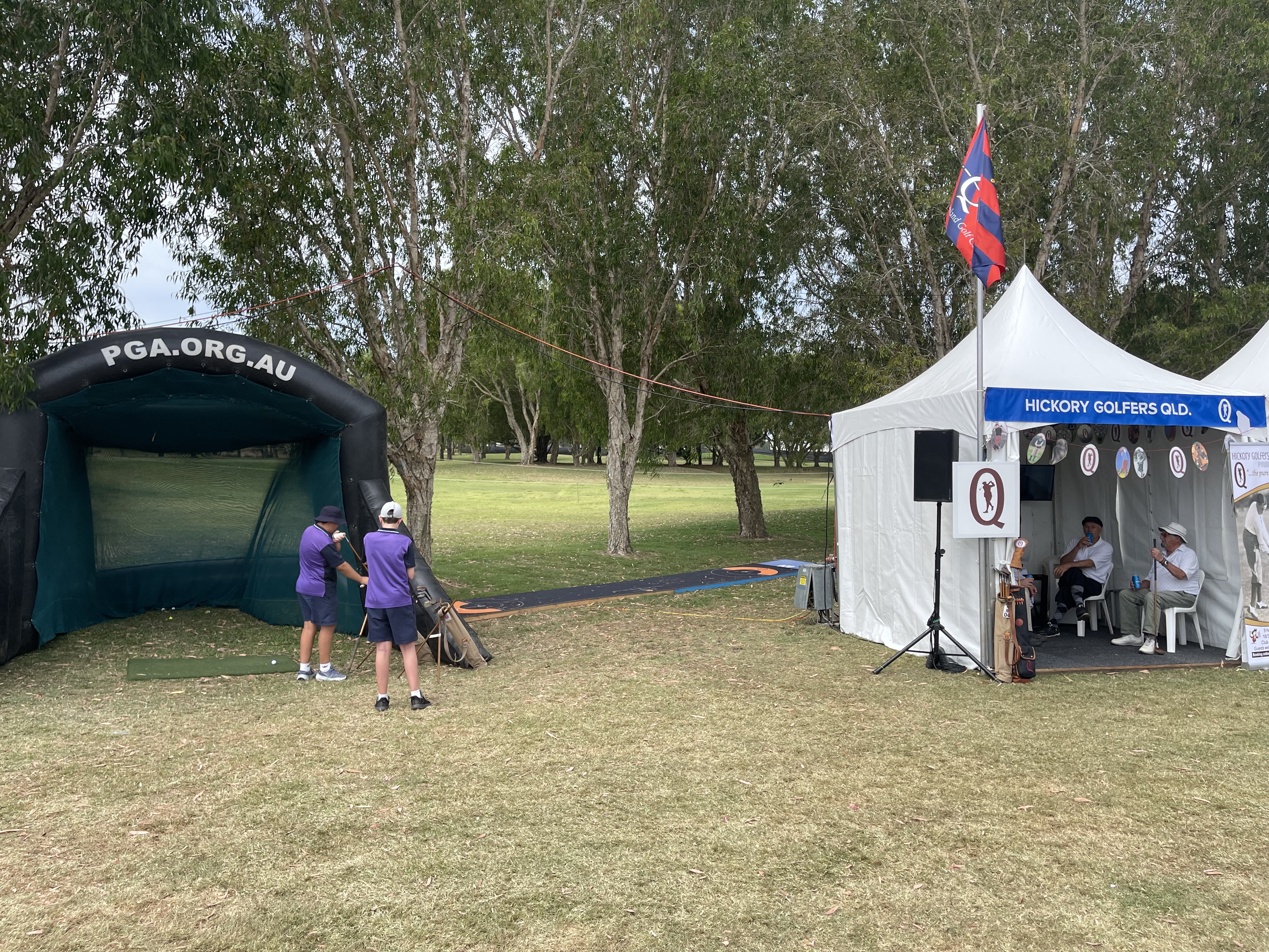 Hickory Golfers Queensland Inc took the opportunity to promote the Association and hickory golf generally. Thanks to many volunteers, our tent was manned by at least 3 members on each shift over the four days. Great interest was shown by the golfing public and many, including juniors, enjoyed swinging a hickory club in our hitting bay. Charlie Earp was on hand to provide instruction to young and old. Many unaware that they were receiving a lesson from the coach of Greg Norman, Wayne Grady, Corinne Dibnah and many other famous golfers .