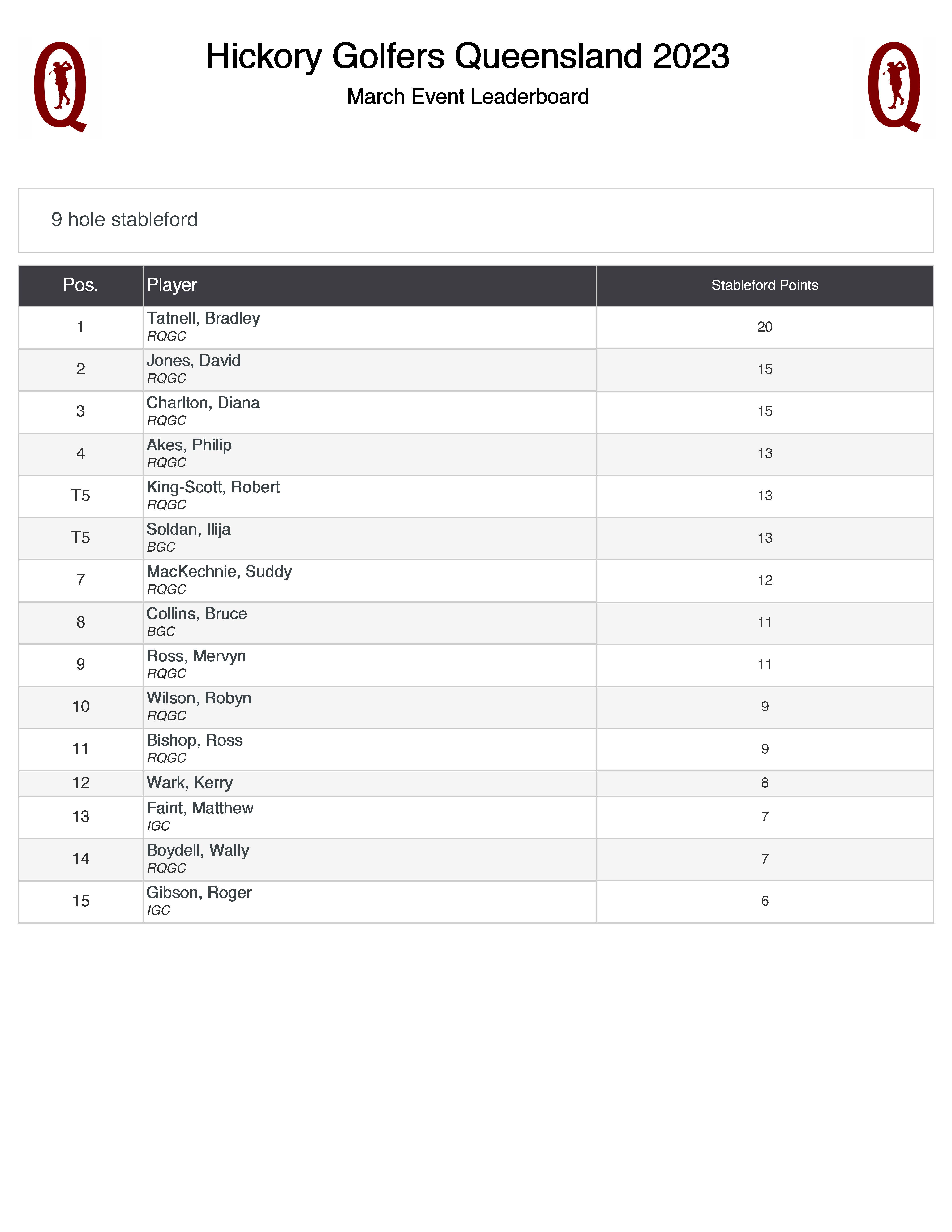 Our thanks again to Royal Queensland Golf Club for their continued support of our great game.