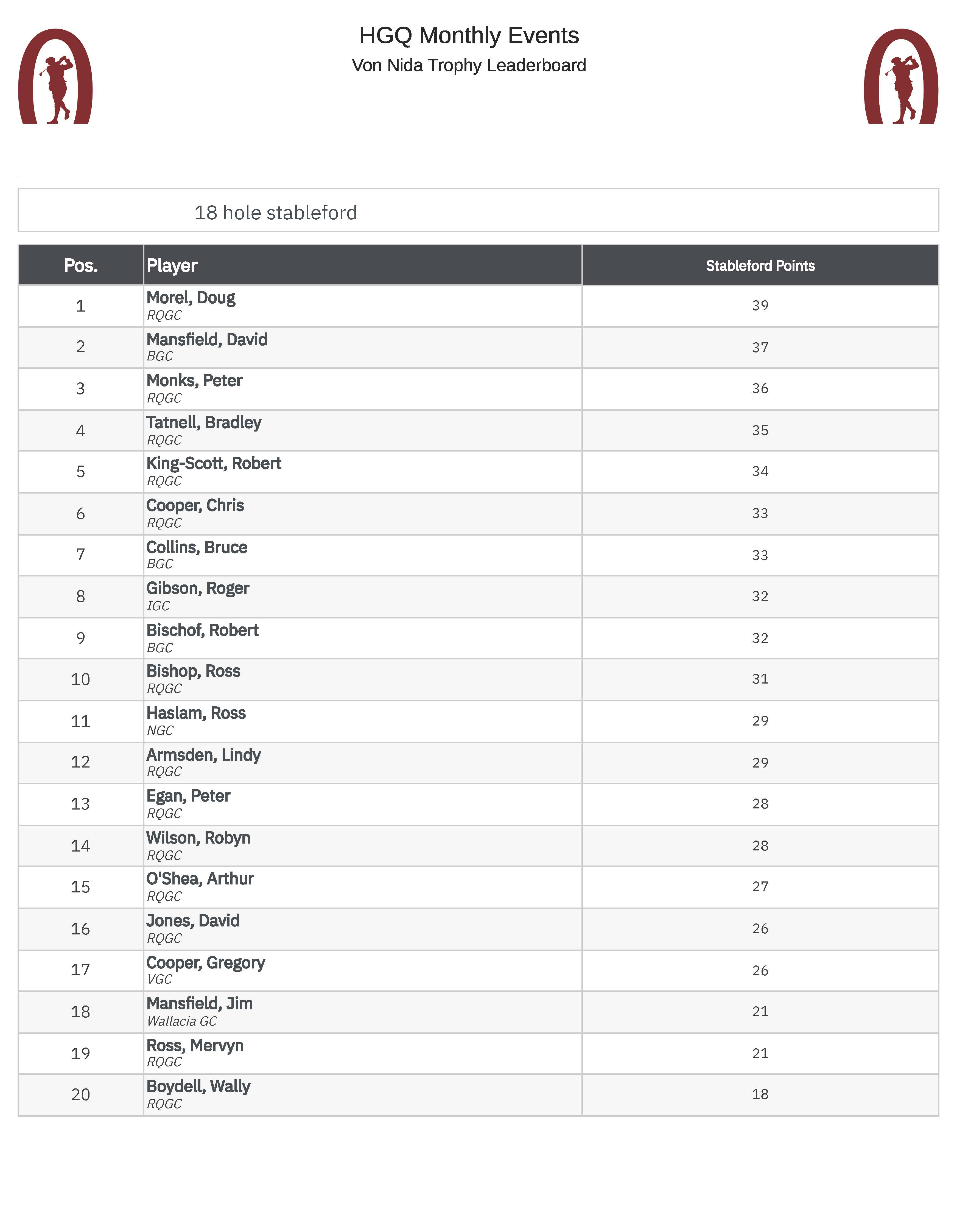 Doug Morel played very well to record a score of 39 points to win the annual event. Dave Mansfield apparently played well for 16 holes and came in with 36 points to be runner up. Peter Monks showed that a couple of months in the UK does ones golf no harm and carded 36 points for third place.