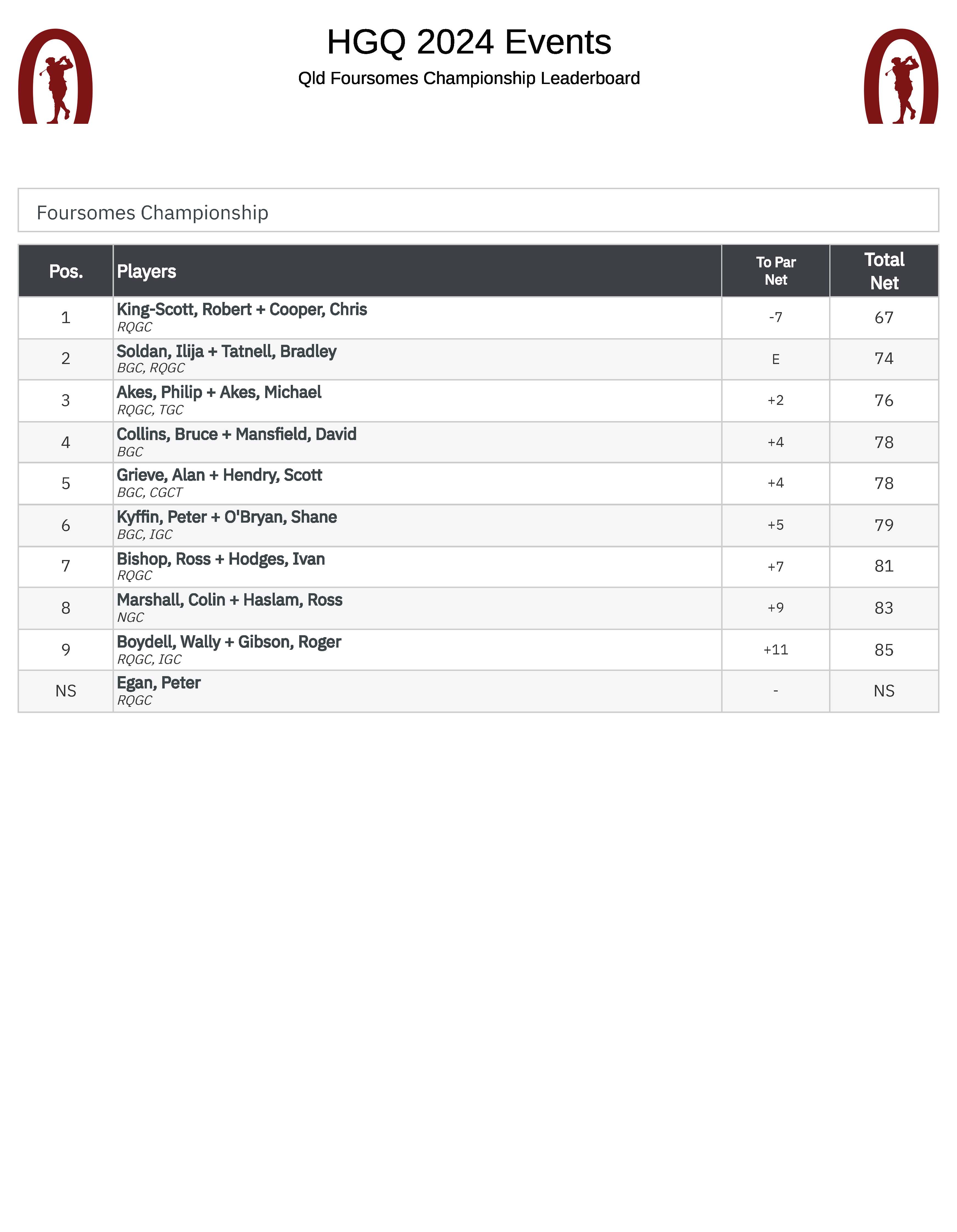 The rules prohibits the Champions also winning the net event. If that were not the case the King-Scott/Cooper would have also won the net event by 7 shots!