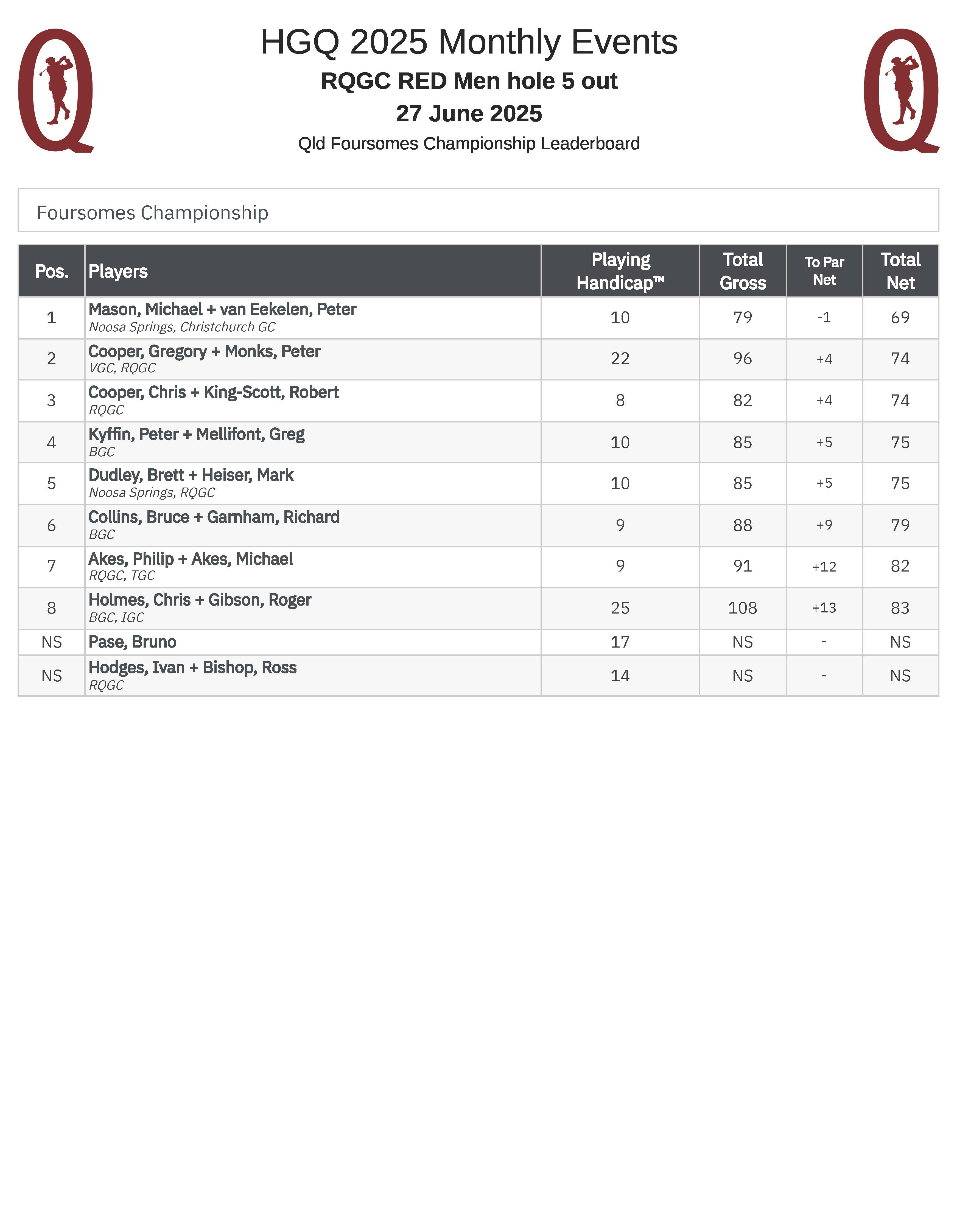 The rules prohibits the Champions also winning the net event. If that were not the case the Van Eekelen/Mason pair would have also won the net event by 5 shots!