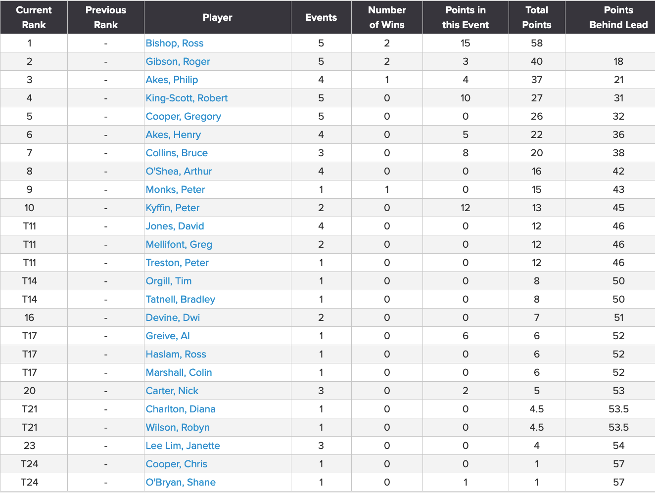 Roger Gibson, Rob King-Scott, Peter Kyffin x2, Ross Bishop and Nick Carter a 5 pointer!