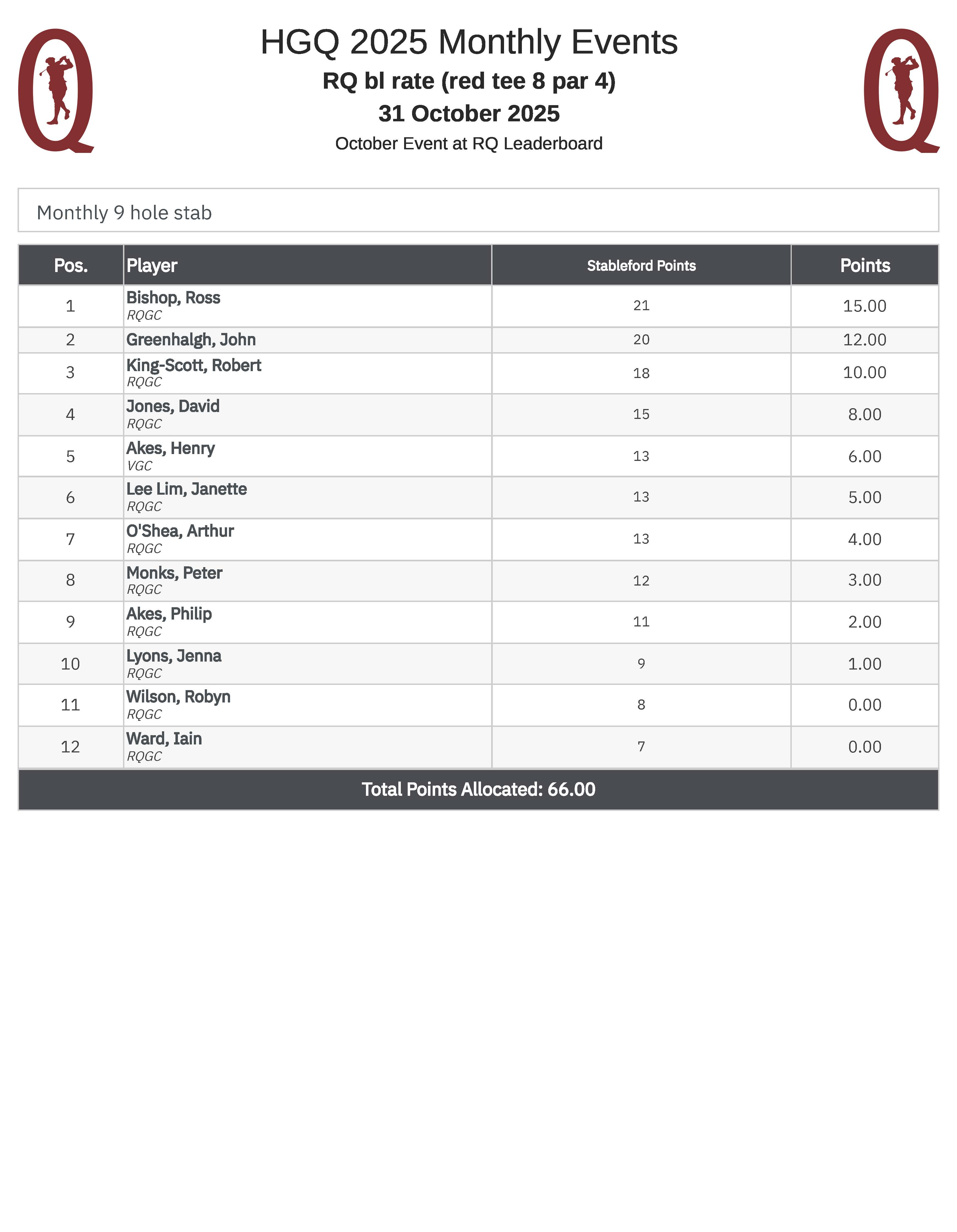 Ross Bishop maintained his good form having won last month's event at Indooroopilly, the Australian Hickory Shaft net Championship and the South Australian Hickory Shaft net Championship.. Ross won with 21 points , second was John Greenhalgh with 20 points. In third place was Rob King-Scott with 18 points.
