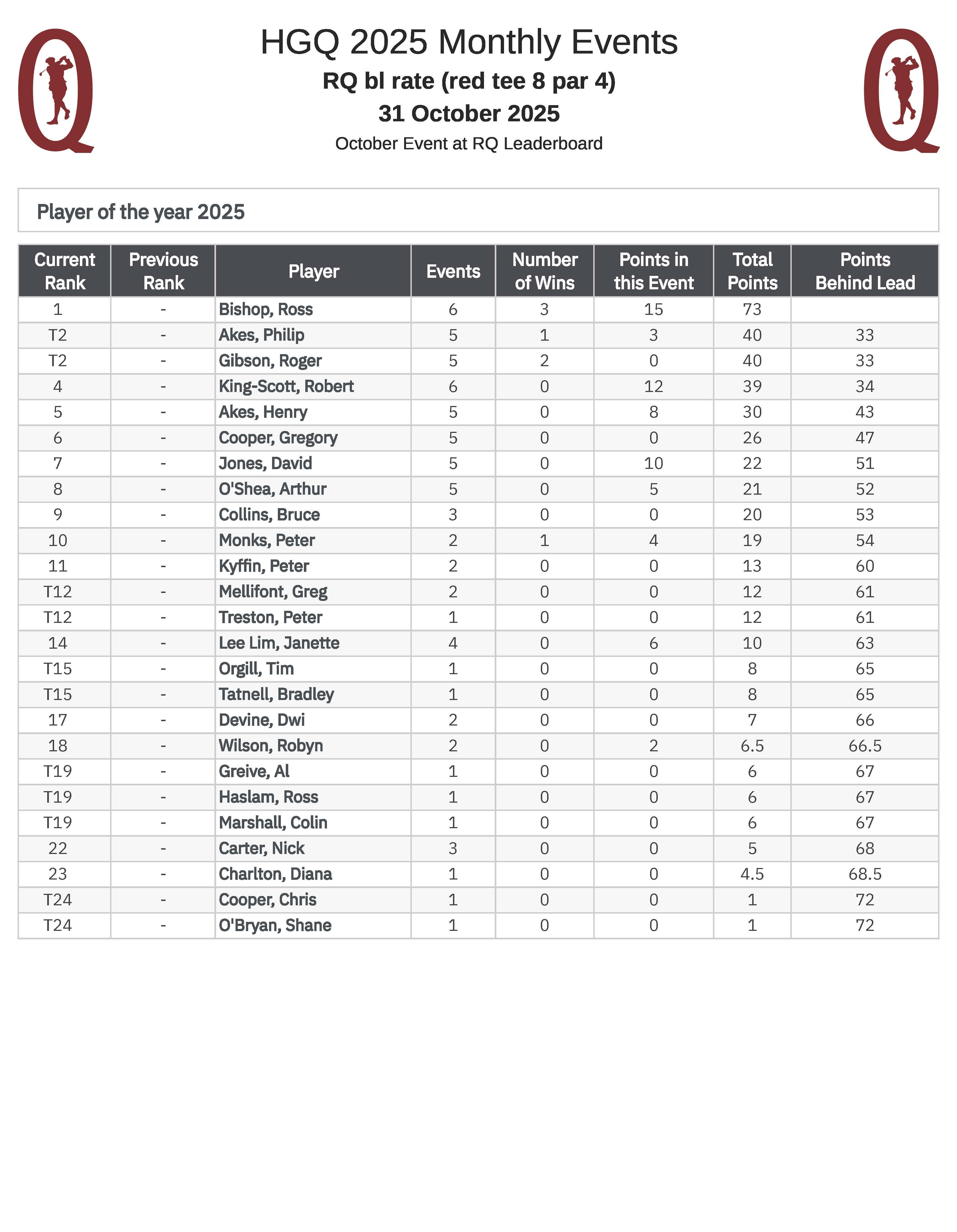 The day started with storms looming. This reduced the field from 17 to 12. Those that ventured out under threatening weather were rewarded with a fairly cool dry day with minimal wind. Good golfing weather. We welcomed some new players, Jenna Lyons and Iain Ward. John Greenhalgh made a welcome return after many years absence.