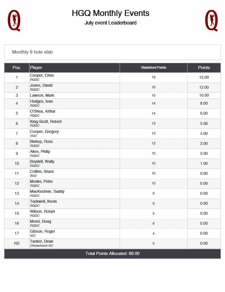 2nd place was the very consistent David Jones. Your reporter had a surprising 14 stableford points to just edge out President Rob for 5th place.